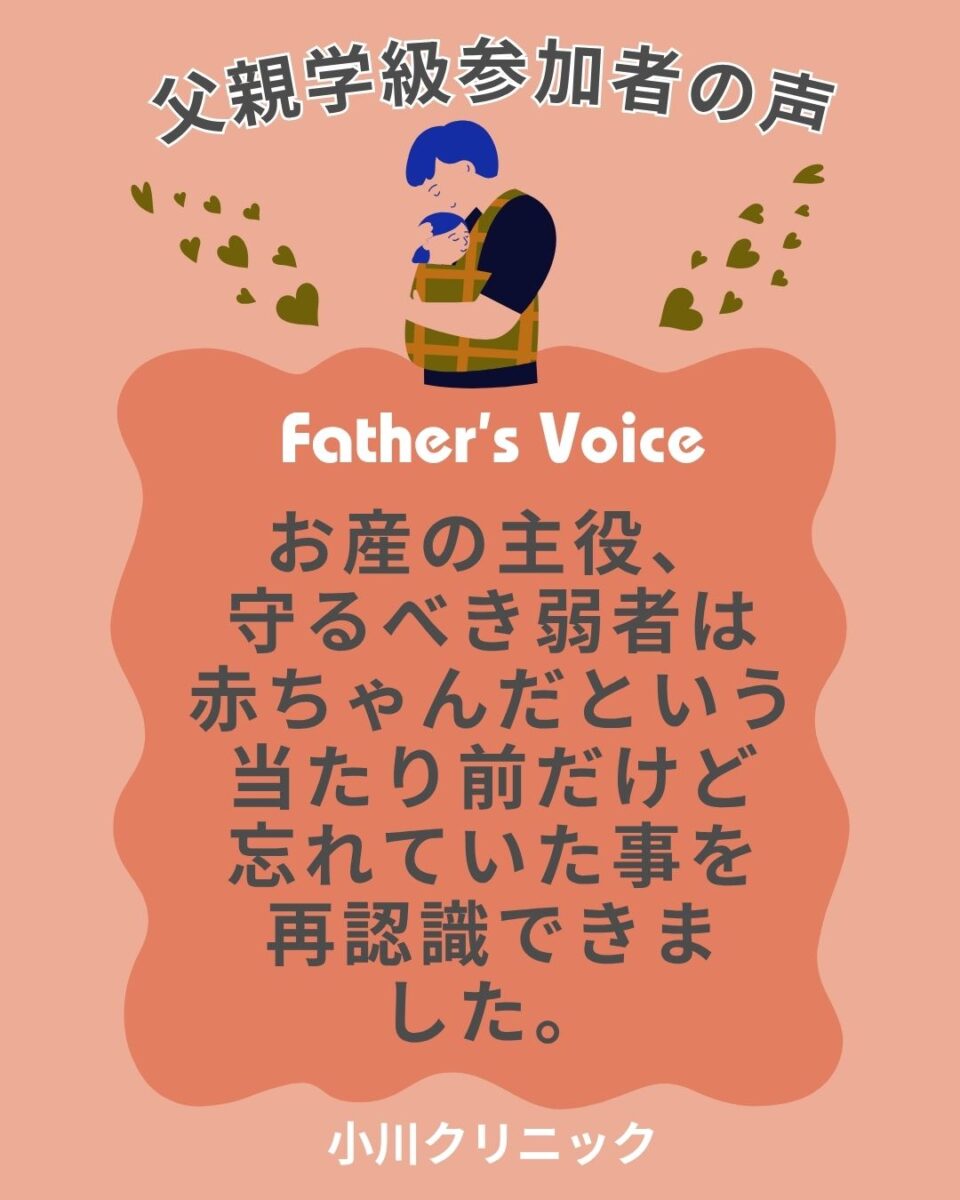 先日開催された父親学級には、たくさんのお父様がご参加くださいました。父親学級の内容に「なるほど!」「大事なことを学ぶことができました!」の声がたくさん!
