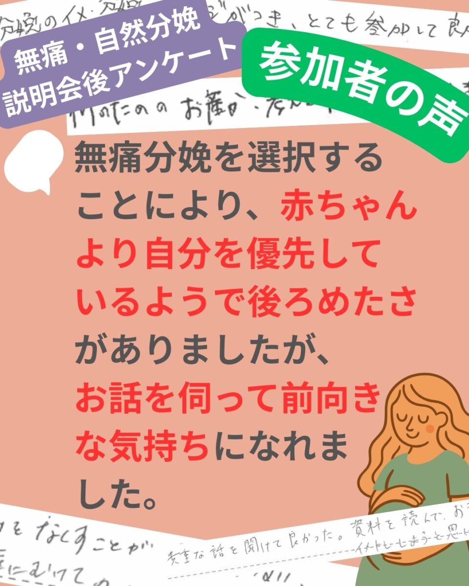 【無痛・自然分娩説明会後アンケート】参加された方々のご感想