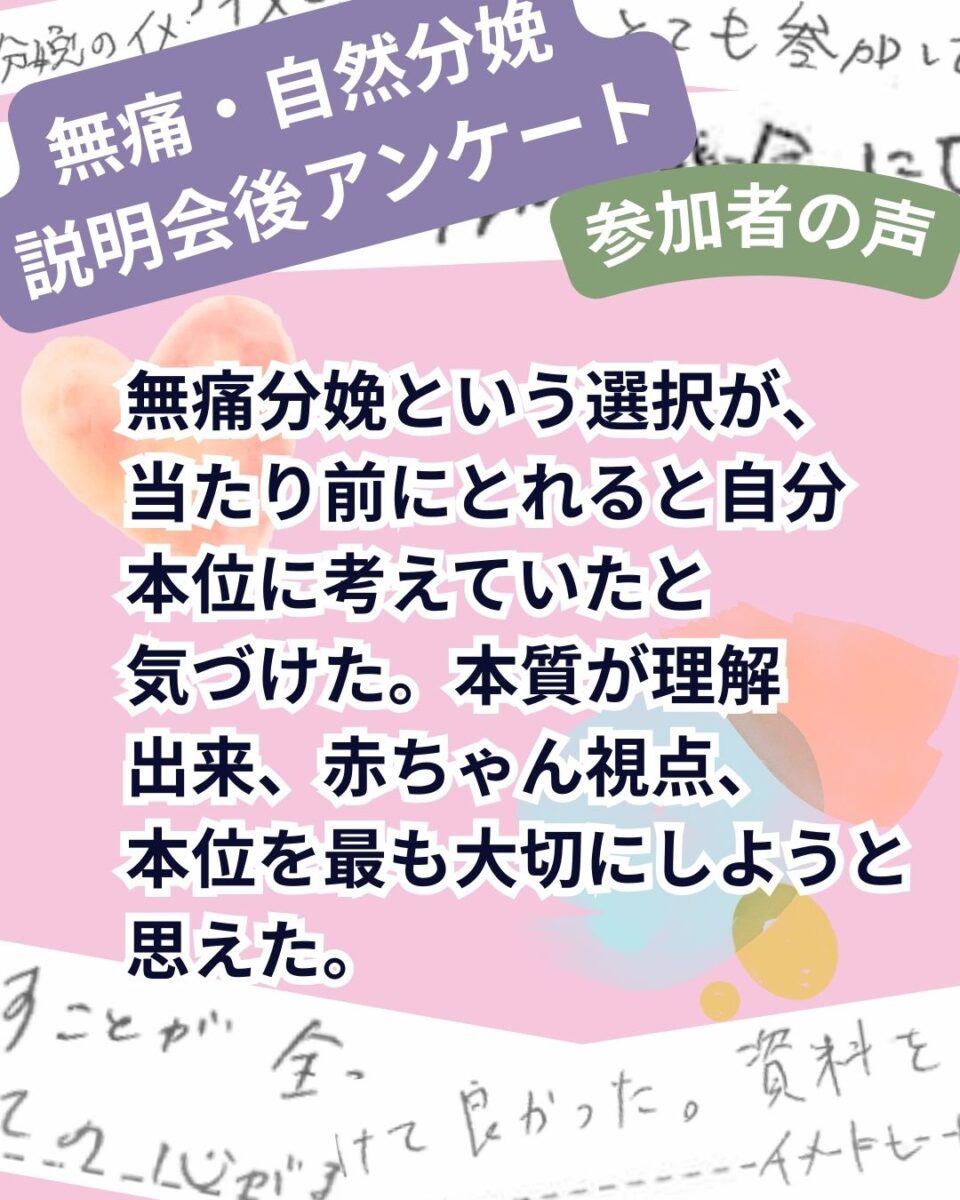 【無痛・自然分娩説明会後アンケート】参加された方々のご感想