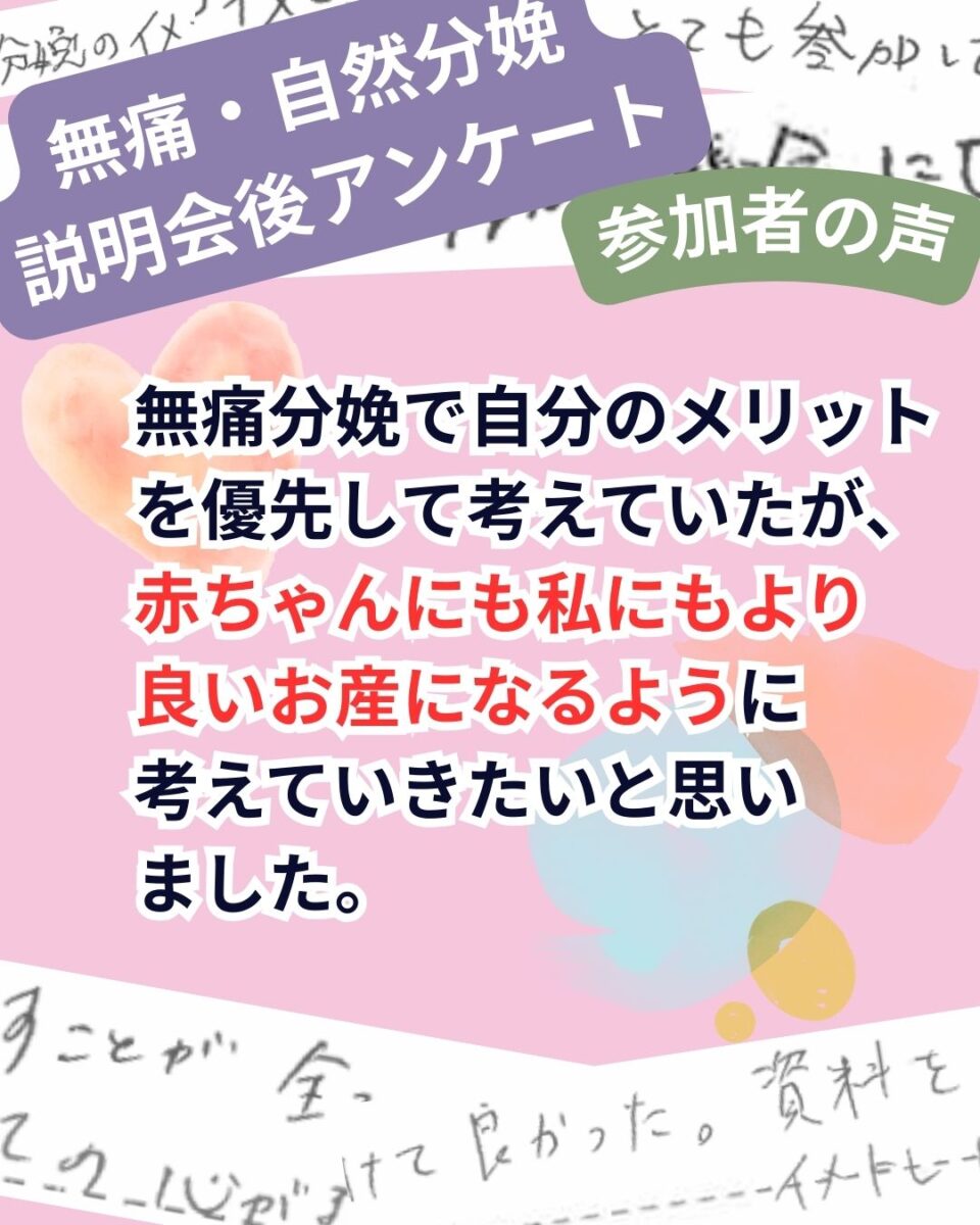 【無痛・自然分娩説明会後アンケート】参加された方々のご感想