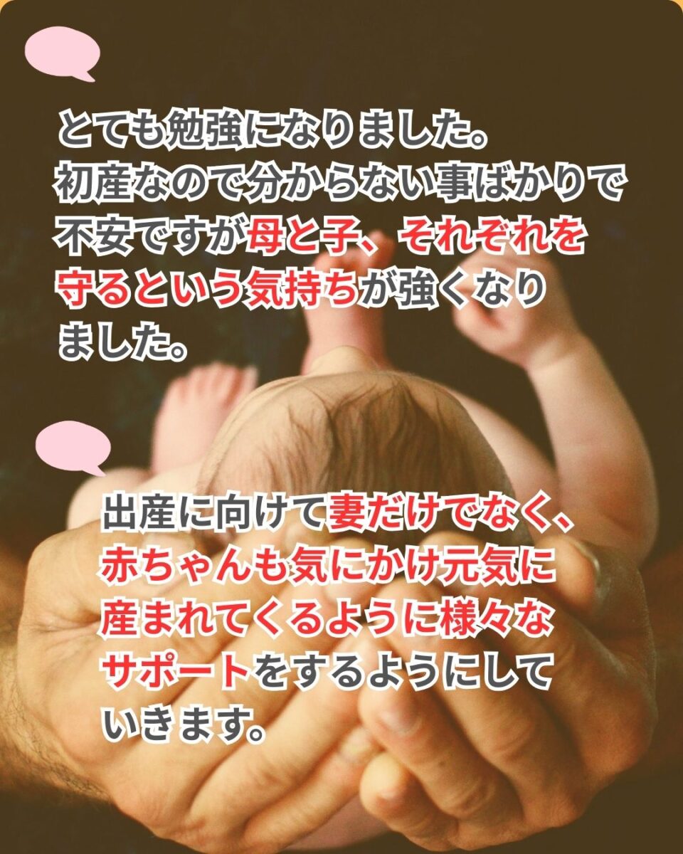 先日開催された父親学級には、たくさんのお父様がご参加くださいました。父親学級の内容に「なるほど!」「大事なことを学ぶことができました!」の声がたくさん!