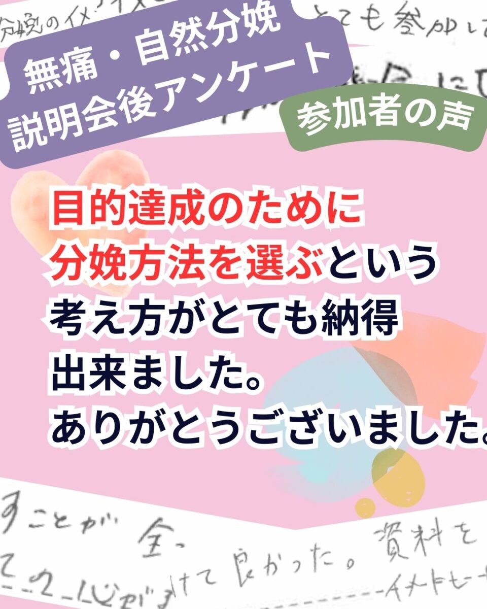 【無痛・自然分娩説明会後アンケート】参加された方々のご感想