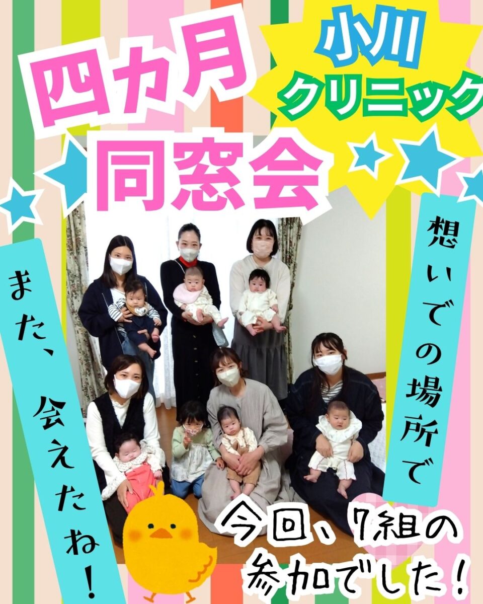 小川クリニックではご一緒の時期にご入院、ご出産されたママと赤ちゃんの再会の場として、同窓会を開催しています。まだまだママになって四か月。赤ちゃんとの生活に日々翻弄されていることも多い時期☆この同窓会は同じ月齢の赤ちゃんの子育てをするママ同士情報交換をしたり、日頃の悩みを共有し、おしゃべりを楽しんだり、ママ友づくりができる場としてママさんに人気のイベントです!