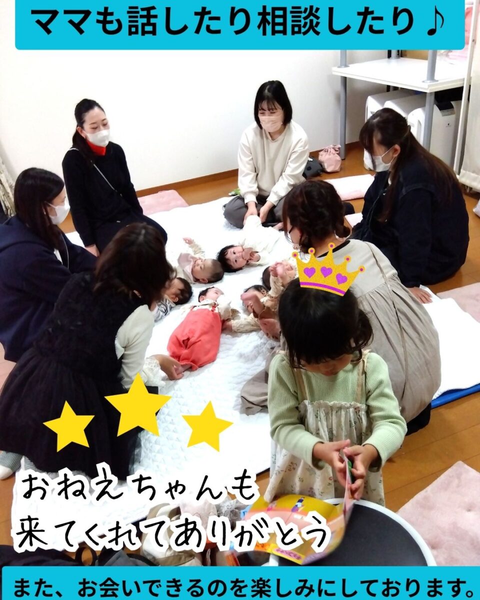 4ヶ月同窓会が開かれ、7組の親子が集まりました。そして3才のお姉ちゃんも参加してくれました。