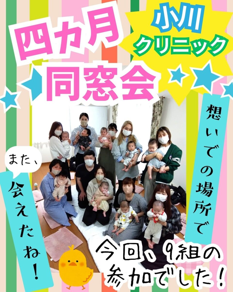 小川クリニックではご一緒の時期にご入院、ご出産されたママと赤ちゃんの再会の場として、同窓会を開催しています。まだまだママになって四か月。赤ちゃんとの生活に日々翻弄されていることも多い時期☆この同窓会は同じ月齢の赤ちゃんの子育てをするママ同士情報交換をしたり、日頃の悩みを共有し、おしゃべりを楽しんだり、ママ友づくりができる場としてママさんに人気のイベントです!